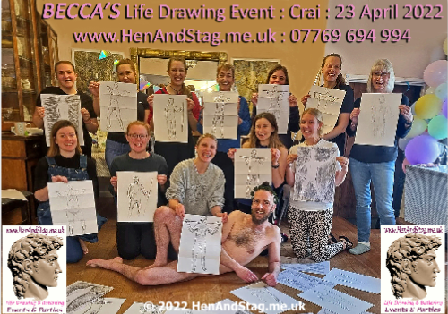 Short & simple! My “Hen do” events were all a total surprise. It was a superb get together for all my old friends but by far the CLASSYEST most entertaining / memorable were the 90 min. Life Drawing Event & Butler lead Games! Never thought MUM would be happy with it, but “Total Blast” Thank you so much!!