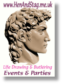 They do however ensure that the groups of Hens / Stags will successfully progress through a series of FUN life drawing exercises to depart with many happy memories, a fist full of quirky sketches and for some - a desire to try life drawing for real!